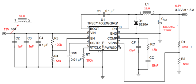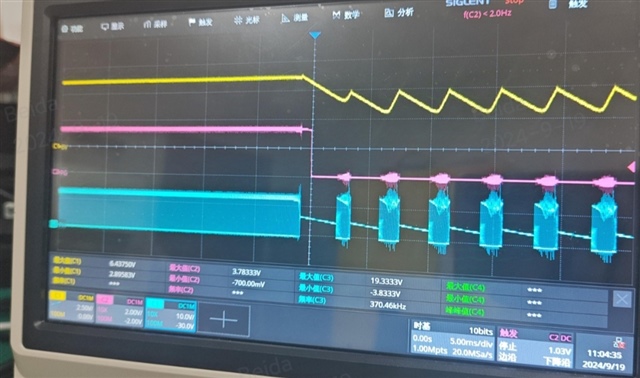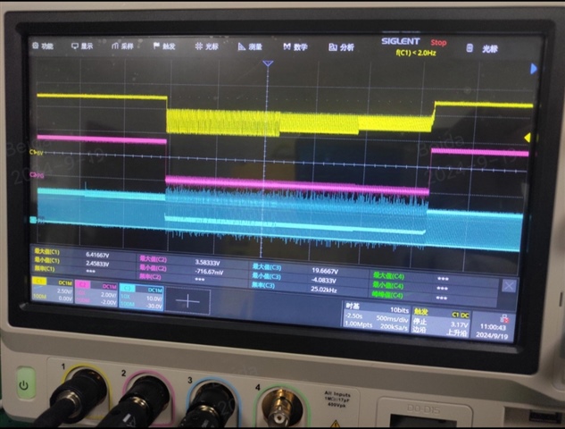 - During TPS57140-Q1 work in normal mode, there is no output of PH pin suddenly. Vin and Vout voltage are abrove UV threshold. The left is overview waveform, and the right is zoom in waveform.