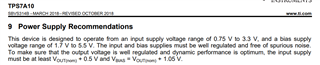 The issue comes when consulting the paragraph of power supply recommendations. There it is stated that the VIN should be VO(nom) + 0.5V. For my case, this level exceeds the maximum input voltage (3.3V).