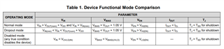 However in the datasheet it is stated that the maximum VIN is 3.3V. Furthermore, for operating in the "normal" mode, it is required that VIN >= VO(nom) + VDO. For the case of the TPS7A1030PDSET, VO(nom) is 3V, plus the VDO it raises up to approximately 3.1 V maximum.