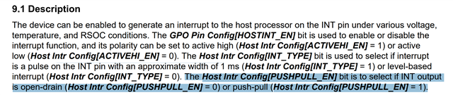 Hello, block diagrams for the BQ27Z746 datasheet indicate that GPO is a push-pull output. However, the technical reference manual says this is configurable as an open drain output. Can somebody please clarify if this signal can be open drain or not?