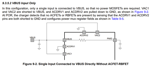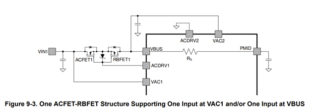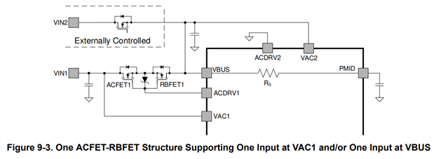 If I remove the VIN2 FET, should I leave VAC2 to be connected to VBUS (like in figure 9-3) or should I connect it together with VAC1 (like in figure 9-2)