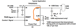 For TPS2553, when Vin=5V, EN is low, what's the leakage current or impedance from OUT to GND?