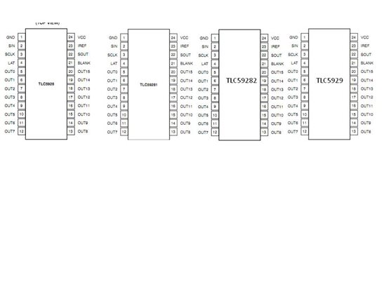 TLC5928, TLC59281, or TLC59282 - same pinout, but lower output current levels, faster switching speeds, no special modes.