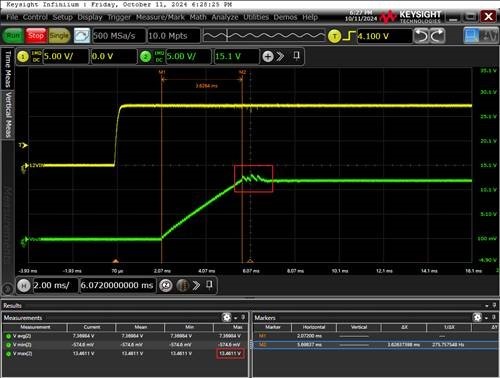 5.2 Similarly, under no load conditions, referring to the power-on waveform previously provided by Jack, Vout experiences an overshoot issue, where it is set at 12V but spikes up to 13.46V. What methods can be used to improve this?
