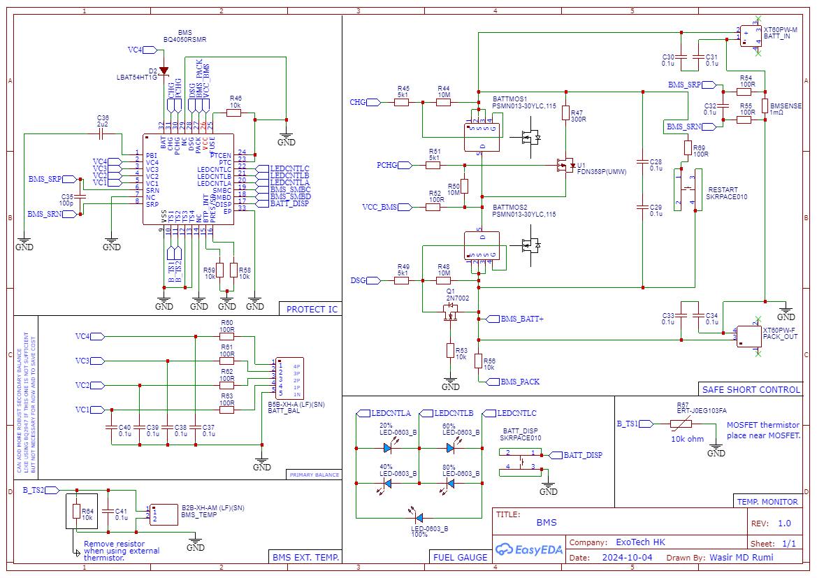 Hello, I have been designing a robot for my final year project. As such, I wanted to use a BMS and selected the BQ4050 based on the reference design of TIDA-00982 (https://www.ti.com/tool/TIDA-00982) and expanded it to a 4s1p design.