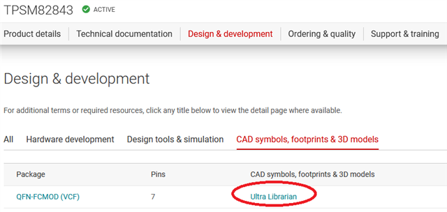The CAD symbol, footprint are not available yet. I triggered the responsible team to publish it. It might take up to 3 weeks until availability. I will follow up and let you know. Sorry for the inconvenience.