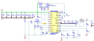 I am experiencing an issue while using the TPS552882RPMR. The VSYS is powered with 24V from a 10A bench power supply, and the output is configured for 12V/5A. However, the output current is limiting at 3.8A. Below is the detailed circuit design: