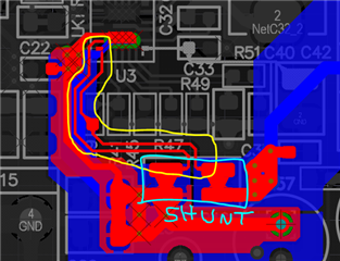 Additionally, here is the PCB layout showing the routing of the shunt resistor: