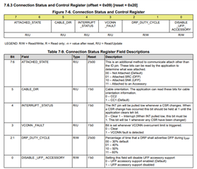 #define HD3SS3220_ADDR 0x67 #define HD3SS3220_INTERRUPT_PIN 14 ... bool state = gpio_get(HD3SS3220_INTERRUPT_PIN); while (!state) { reg_read(i2c_default, HD3SS3220_ADDR, REGISTER_CONNECTION_STATUS, data, 1); printf("REGISTER_CONNECTION_STATUS: %X\r\n", data[0]); reg_read(i2c_default, HD3SS3220_ADDR, REGISTER_CONNECTION_STATUS_AND_CONTROL, data, 1); printf("REGISTER_CONNECTION_STATUS_AND_CONTROL: %X\r\n", data[0]); data[0] = (data[0] & 0xC0) | 0x01; reg_write(i2c_default, HD3SS3220_ADDR, REGISTER_CONNECTION_STATUS_AND_CONTROL, &data[0], 1); sleep_ms(10); state = gpio_get(HD3SS3220_INTERRUPT_PIN); printf("interrupt pin: %d\r\n", state); sleep_ms(5000); }
