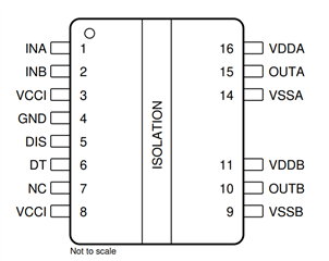 I am using UCC21540A isolated gate driver with an external charge pump. I want to know whether there is any internal discharge path through pin 14 for the charge pump capacitor to discharge.