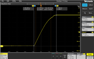 Currently, we found that when measuring SS time set to 2ms, if Vout is rising from 0% to 100%, the measured time is 2.799ms (pic1), which exceeds the specified SS time range (1.4ms~2.6ms).