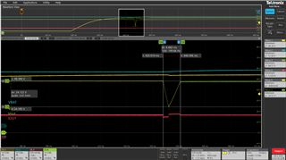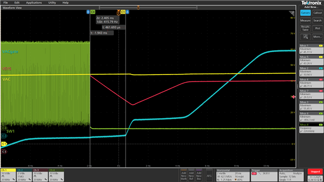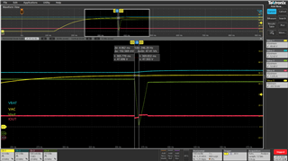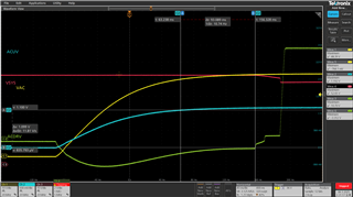 - The purpose of this test is to find auto-reverse voltage level to minimize the voltage dip when VAC is turned off and VBAT is switched on with 1A load condition. So I set the UV level is 45V.