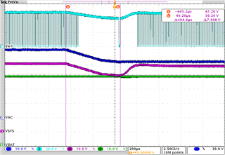 Q3. I want to minimize(t_Vdip) the voltage dip when changing VAC to VBAT with 1A system load. As attahc figure, the voltage level touched 10V. This may trigger under-voltage protection in connected systems.