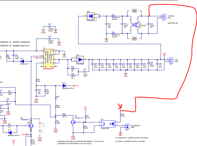 We have a question regarding TPS23730RMTR POE circuit and power adapter design.