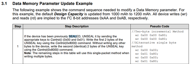 I have implemented and tested command input via control (reading statuses and flags, reset commands, BAT_INSERT command, etc.). But for some reason, the sealing and unsealing commands via control do not work. I managed to seal via memory access(UPDATE_STATUS |= 0x80). After that, I cannot unseal the device via control. What can I provide to better describe the situation? What should I pay attention to?