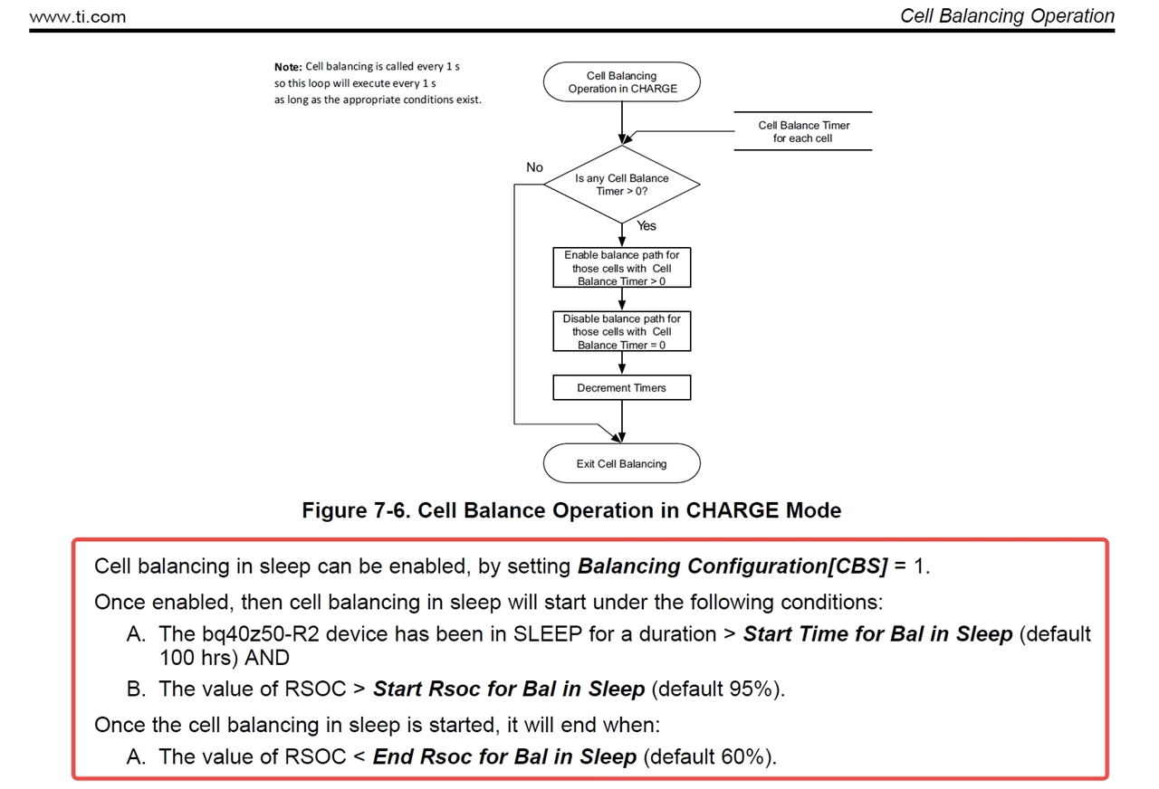 Hi,I want to configure the sleep balancing function of BQ40Z50-R2. If the battery RSOC>60% after 24 hours of sleep, I need to use this function to balance the RSOC to 60%. Attached is my configuration file. Please check if there are any parameters set incorrectly? Also, may I ask