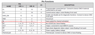 In TPS1H100-Q1 datasheet, the pin3 is for Input control for channel activation. see image below. the datasheet not shows "Input control" is internal pulldown