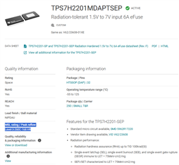 Following the document mentioned in the other 2 inquires will satisfy this question for the TPS7H2201HKR/EM: