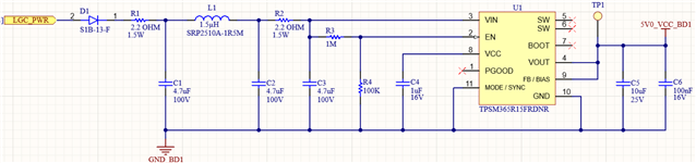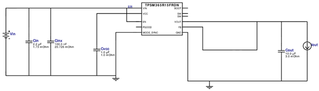 Vin = 28.0V. Expected Vout = 5.0V. Measure Vout = ~0.9V. Measure Vcc = 3.3V (which is slightly higher than datasheet). Not sure what to probe to try to determine issue since most functions internal.