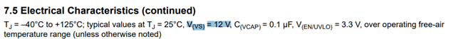 2. The datasheet specifies electrical characteristics based on Vs = 12V. We would like to understand the behavior when Vs varies between 8V and 18V.