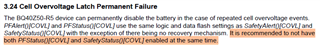 This is simply due to both PFStatus()[COVL] and SafetyStatus()[COVL] using the same logic and data flash setting meaning that they will interfere with each other during an repeated cell overvoltage event.