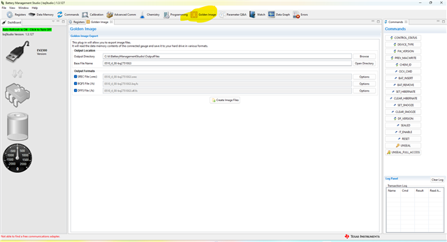 For the BQ27510-G3 we need to use Bqstudio , I done load the version 1.3.100 and 1.3.127 And I couldn't find the Project dashBoard to do the golden pack and follow the flowchart.