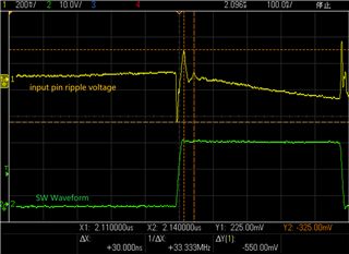 We test LMR14050SDDA input ripple voltage,there is a 33.33Mhz ring.