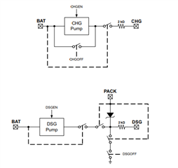 gate drivers of the bq40z50 MOSFETs (DSG, CHG and PCHG pins) can