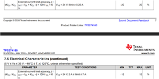 There is a - sign before the ) character "External current limit accuracy, ( I OUT – ICL × KCL –) × 100 / ICL × K CL" I assume this is supoposed to read "(I_OUT-I_CL*KCL)(100) / I_CL*K_CL"