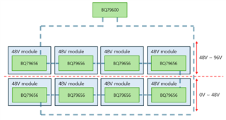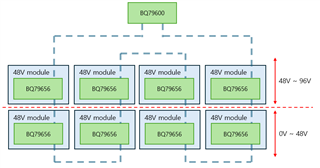 In each sub module, single BQ79656 will be used and in the master side, single BQ79600 will be used as a gateway of this daisy chain communication