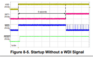 Now, my actual need is to keep WDO low for 200ms after every Wait time iteration(25s,50s,75s in my case) until WDI pulse becomes active again. How do I do that?? My understanding is that WDO only goes low for once, that too when Wait time has expired. Then even if WDI has no inactivity, WDO will still stay ASSERTED.