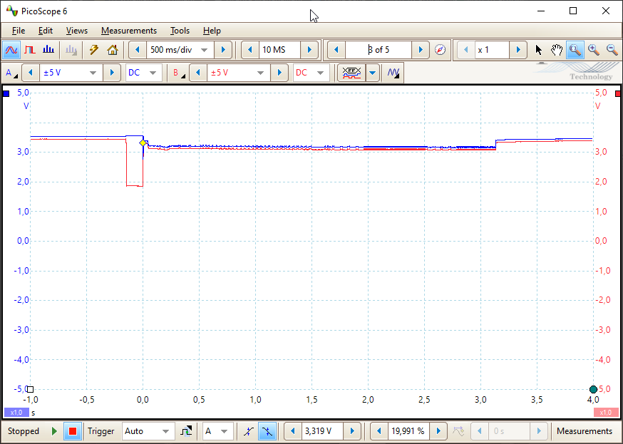 In normal operation, both EN and MODE should be high and with a fresh battery the supercap should be charging. This is however not the case. Lithium thionyl can be a bit lazy if they have been on stock. That is probably why with my bench supply at 3,6V i have seen this occur only once, thinking it was a manufacturing defect and continued testing the other prototype. If you wait for a few hours the supercap usually ends up at around 0,3V while not charging. Waiting 24h does not increase further. Pulling EN low (with a button to gnd on TP28) usually fixed the problem. sometimes you needed to press it multiple times. Once it started charging everything worked as expected.