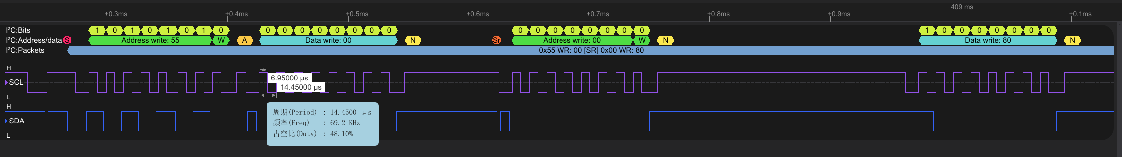 I'm trying to use software-based I2C emulation to communicate with a bq27427 fuel gauge, including initial parameter configuration and reading the remaining battery percentage (SOC), but I haven't been able to successfully read the data. When continuously reading register 0x1C and displaying its lower 8 bits, the value alternates between 0 and 255. Could you provide some reference code for this? I'd really appreciate it.