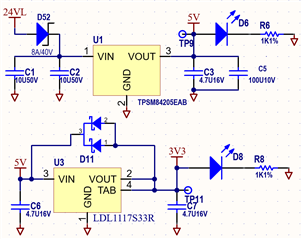 Testing a board assembly with this regulator, I needed to be able to turn the 24VDC input power on briefly while probing, to avoid having to align a scope probe on very tiny contacts with live power. Align probe, watch scope, press foot switch to connect the 24VDC supply. Everything's working great for a few minutes....and then on one power-up, there's smoke everywhere. Time interval between cycles was on the order of 30 seconds; long enough to locate the next node to test, get the scope probe tip lined up right, verify no shorts, then look at the scope screen. I was checking low voltage 3.3V connections on the processor, where no 24V is present.