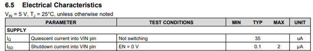 The product's output current is expected to be around 10mA on average when Active and less than 50 uA when Off.