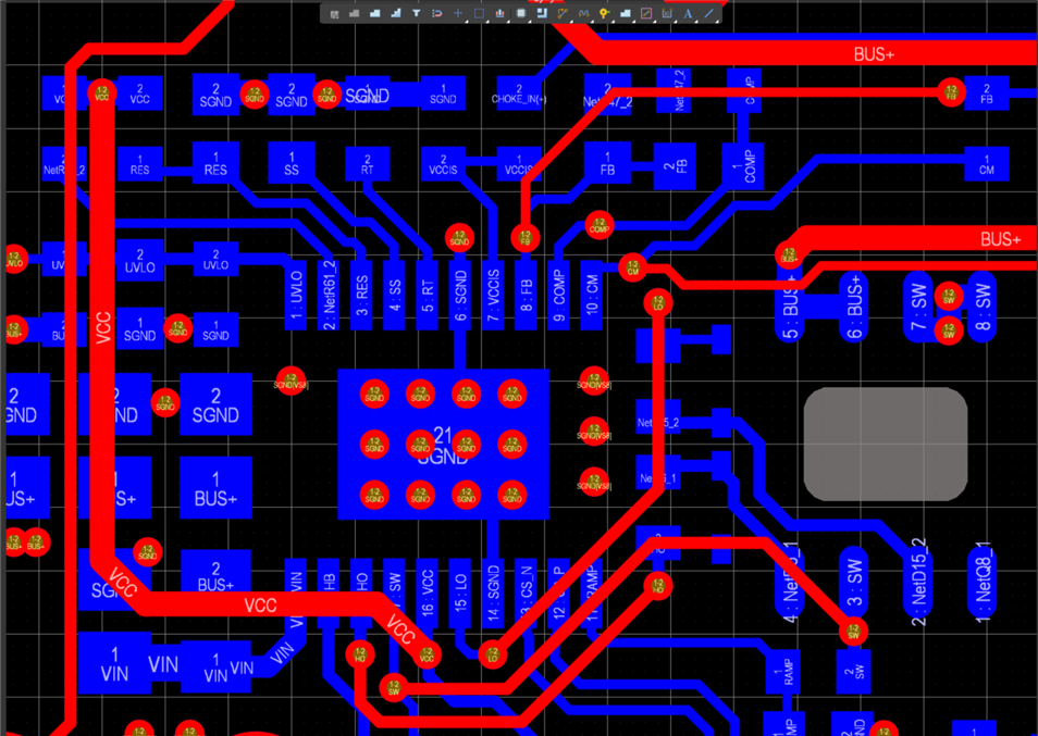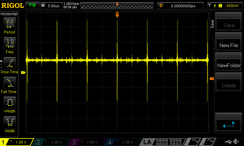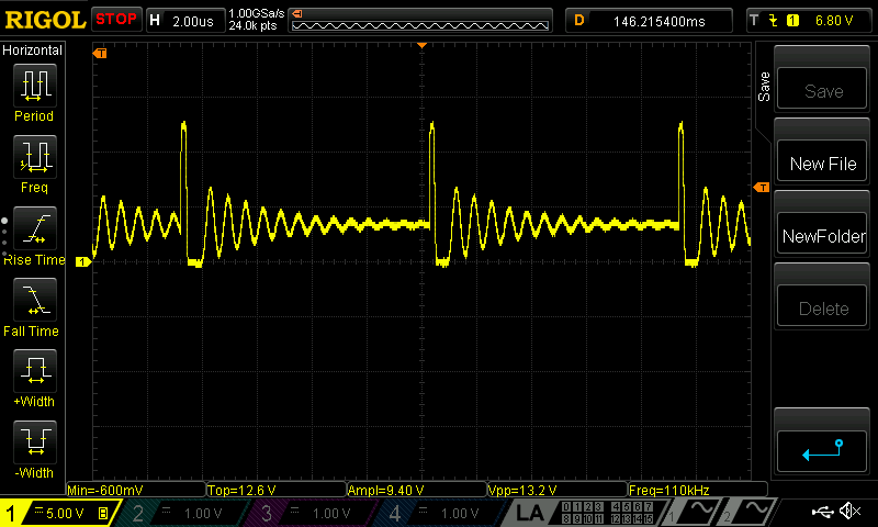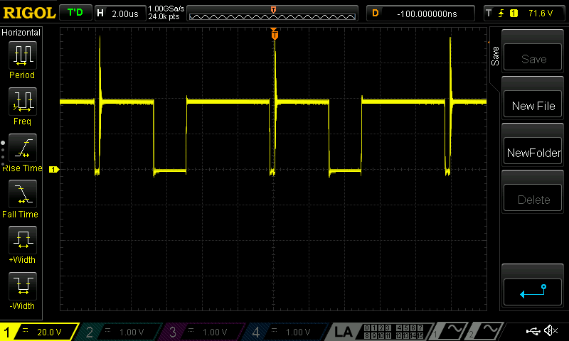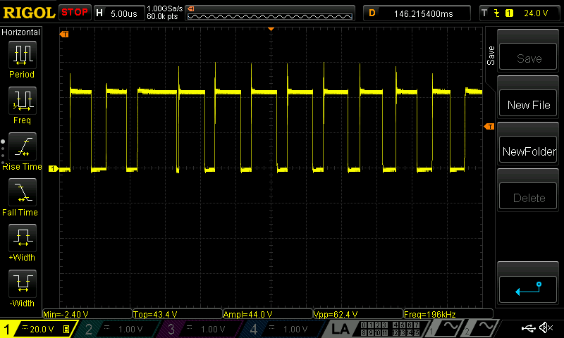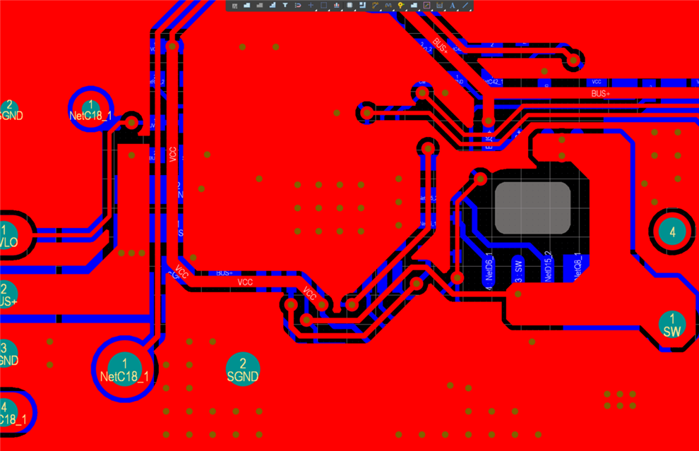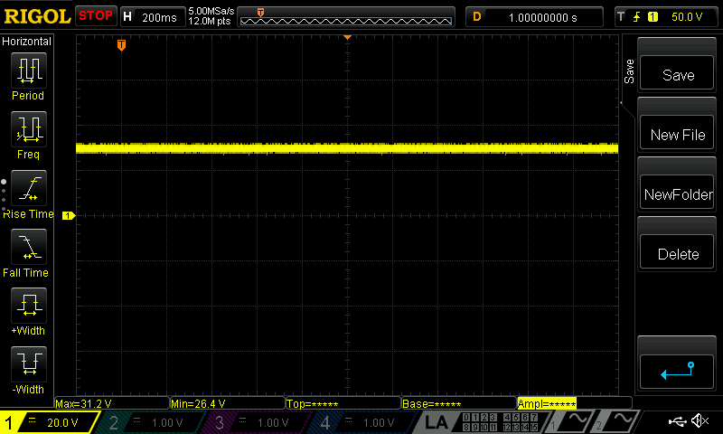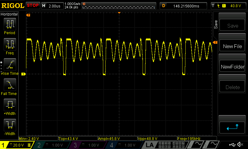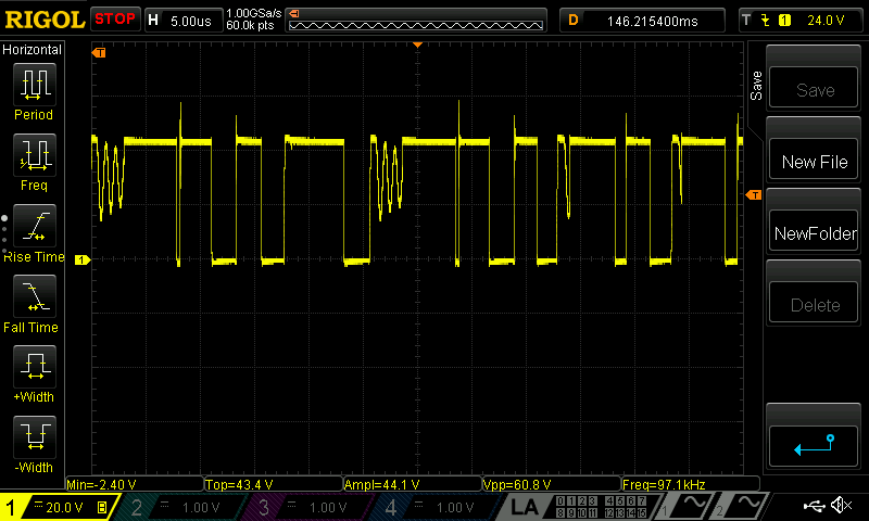 - For now, I can control the output voltage that is ~30V but when the load current is reaches ~430mA the IC enters the hiccup mode. Somehow it cannot supply more than this level of current and I cannot read any CM output for load current in terms of voltage. For testing, I removed the R51 and Q11 to disable the CC control. The schematic is shown below.