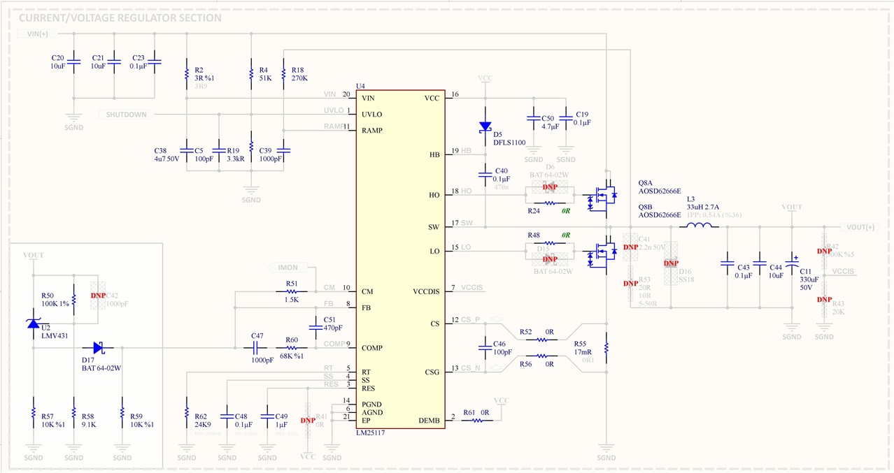 - For now, output voltage is same as the input that is 36V and output current limit is only limited by the source so there is no CC and CV control. I am still testing and the schematic is shown below.