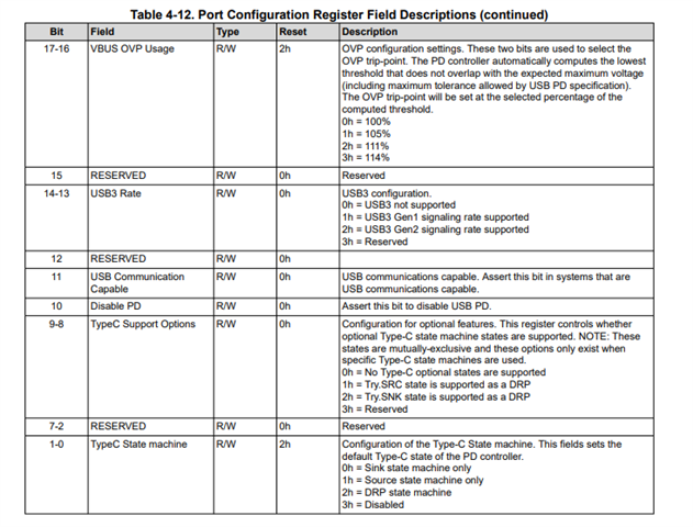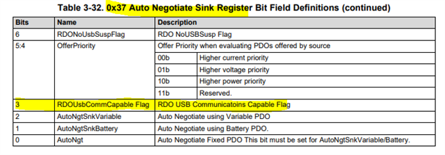 My question is, whether this information about USB Communications Capability is enclosed in every data sheets or TRM of power delivery controllers and how to search for the USB-C PD controller that supports this?