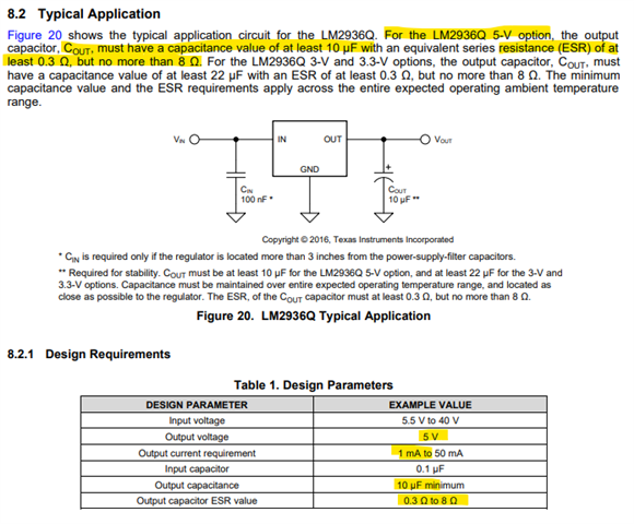 We want to replace another LDO in an existing design by the LM2936QMM-5.0/NOPB and we have the following parameters: