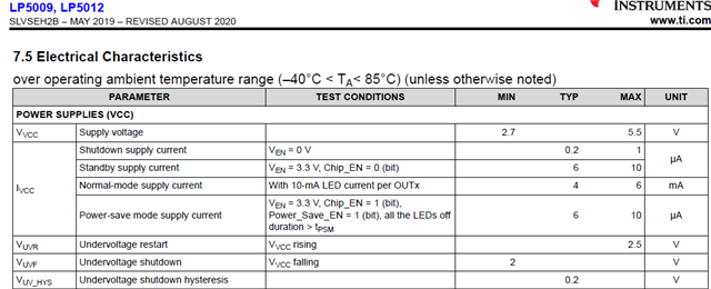 We are considering the LP5817 as driver for the RGB signal LED on an IoT sensor. This LED needs only to blink 1,2 or 3 times occasionally in one color. So nothing fancy. Still it makes sense to use a special driver for that, since controlling it from the MCU directly takes up too many IO lines. The important requirement is: no energy waste while doing nothing. The LP5817 has two low power options. "STANDBY" and "SHUTDOWN". The former consumes 22uA continuously, which is way too much for a battery powered device. We accept ~1uA max for inoperative devices. This leaves us with the "SHUTDOWN" mode. According to the datasheet there are two ways to enter this mode (page 15-16 of document SNVSCQ2 – MARCH 2025):