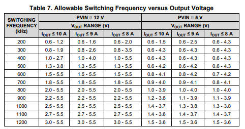 But again table 2 of the data sheet suggests a defined Fsw for a particular output.
