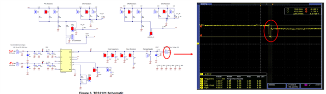 When IN1 is removed from the input, the voltage drops as shown in the attachment, and the CPU turns off.