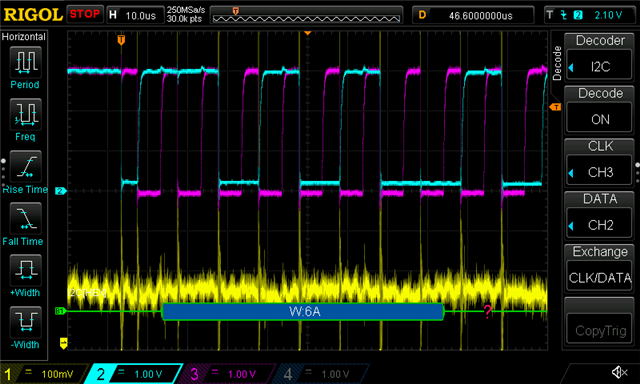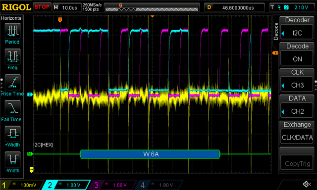 - When reading the battery voltage monitor I get 0x80, but only after a while. The readings are more or less correct for some time (much longer or always when the current draw on VBAT is lower) and then turn to 0x80 constantly (no more correct readings). At about 370 mA (current drawn from battery for the whole system), the readings are okay for about 30 s before they fail.
