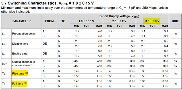 Do we have level shift devices can meet <50ps rise time request? Customer need 2 channels, 1.8V to 3.3V level shift. You can also promote other devices which can meet <50ps rise time request. Thanks.