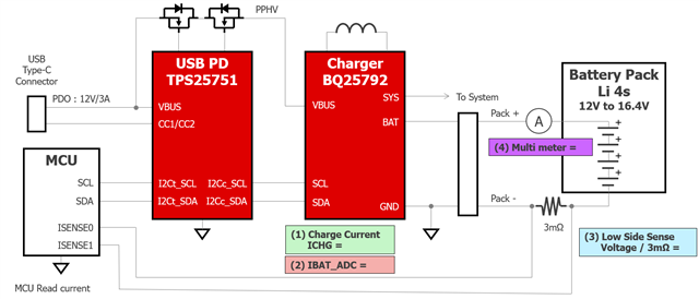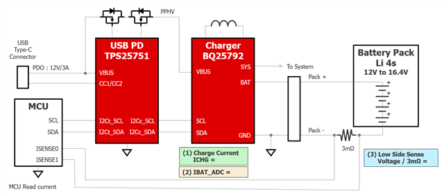 (3) The battery current is the Low Side Sense, and the actual current value is calculated by measuring the voltage across the sense resistor.