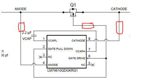 We would like to use LM74610 to periodically conduct the MOSFET and charge a capacitor. This circuit will be used to control the current flowing at the input of a TI TPS63900.