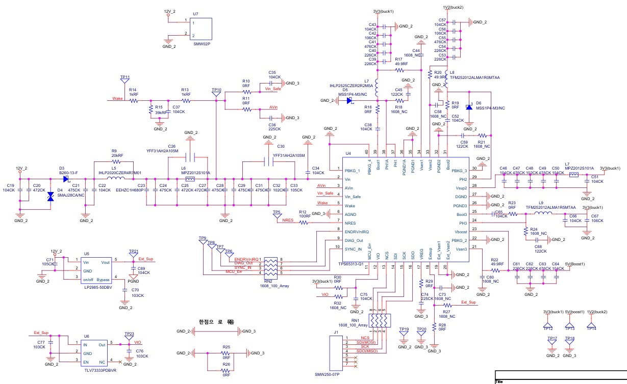 As mentioned earlier, I designed the schematic by closely referencing the TPS65313-Q1 EVM kit.