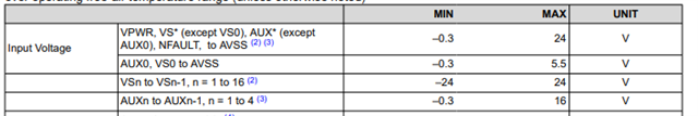 I’ve designed a board using the BQ79631 with the schematic exactly as shown in the datasheet. The device powers up fine, and I’m able to read correct values for HV+ (Battery +) and Fuse+. Below are my measured differential readings (in volts):