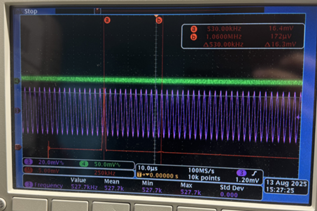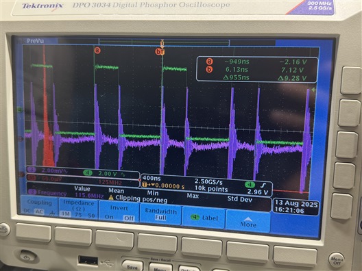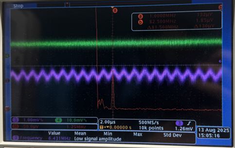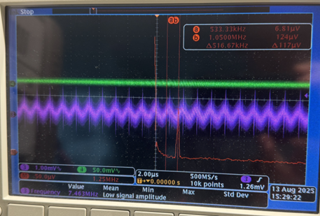 The additional switching pulses are gone. The output ripple become at 1MHz, jwhich is normal