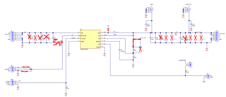 I tried reducing all the cap to the minimum as indicated in the datasheet of TPS62912.